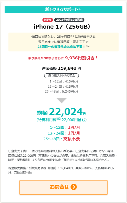 iPhone17シリーズ/iPhone16シリーズ/iPhone15シリーズシリーズも含めた全機種がキャッシュバック/割引の対象です!